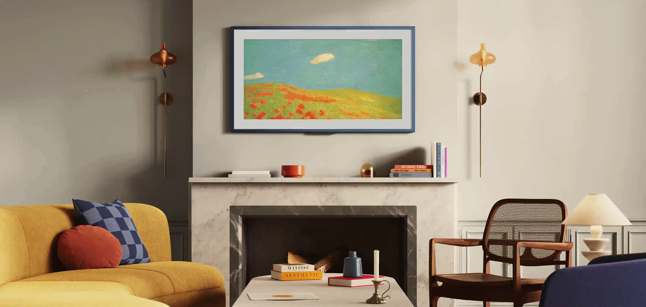- Choose between 2,000 pieces of art to display on the matte QLED 4K screen