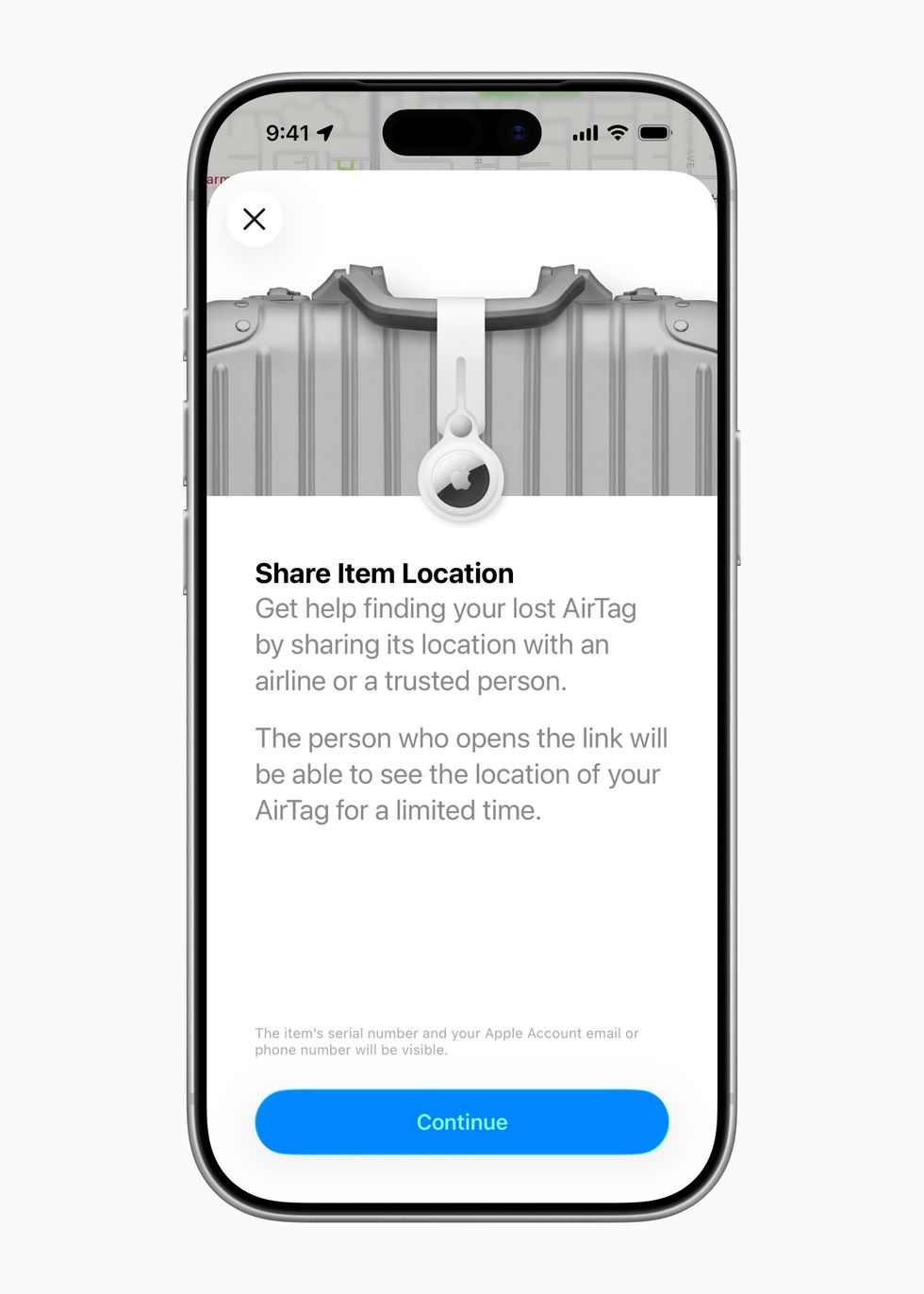 Share Item Location is a feature introduced to iOS to help AirTag owners recover a misplaced item by temporarily and securely sharing its location with trusted third parties, like an airline, so you can cover delayed luggage or other lost items. The shared location will be disabled as soon as a user is reunited with their item, can be stopped by the owner at any time, and will automatically expire after seven days.