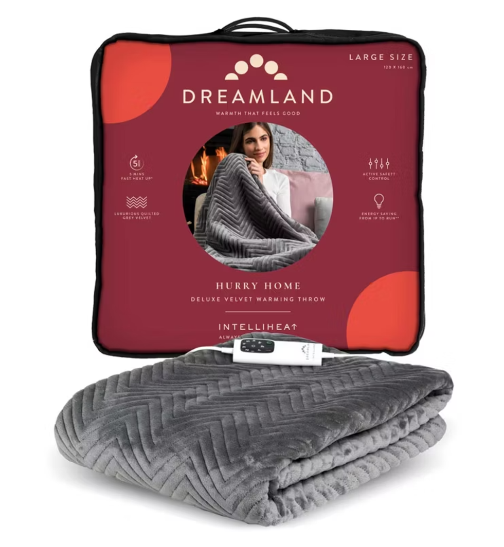 Stay warm and cosy this holiday season with Dreamland’s Velvet Herringbone Quilted Throw. Super-soft, it heats up in just five minutes with Intelliheat+ technology, adjusting to temperature changes while you relax or sleep. All you have to do is plug it in and switch it on, and the blanket will do the rest.