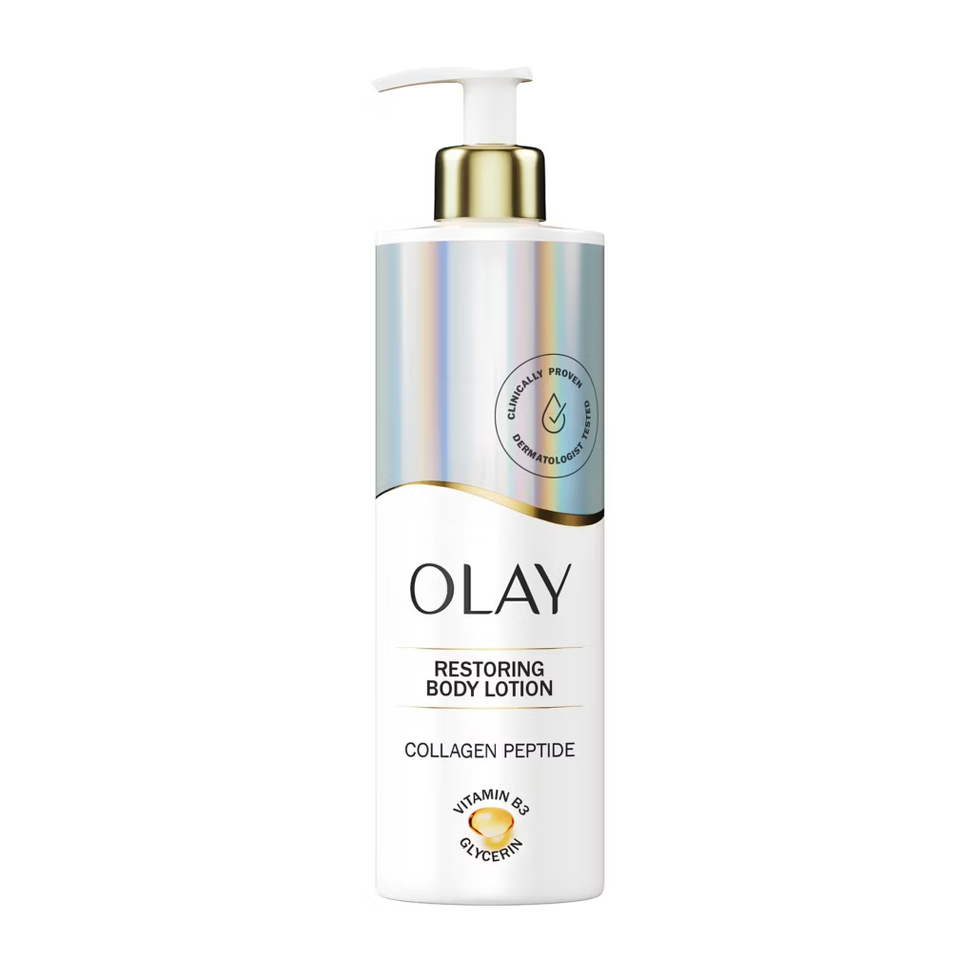 The Olay restoring body lotion is designed with a lightweight, non-greasy formula that is set to deliver 24-hour moisture and absorbs quickly, penetrating deep to help restore the skin’s natural moisture barrier. Enriched with Collagen Peptide, Vitamin B3, and Glycerin, it's made to improve skin elasticity and texture over time.