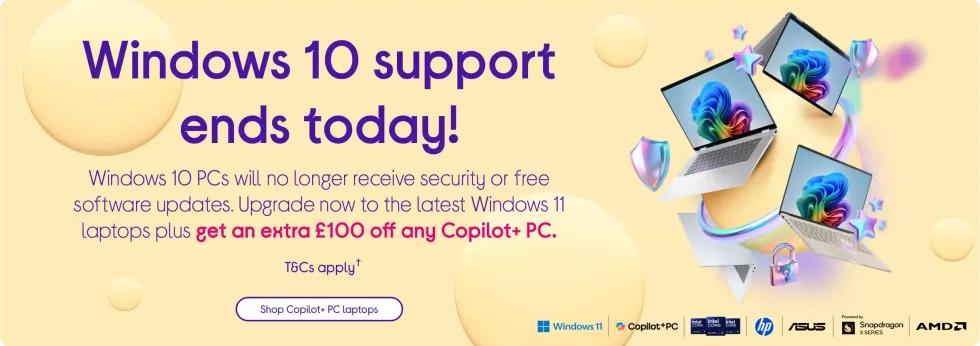 It's been four years since the end of support for Windows 10 was confirmed by Microsoft, but it's finally here. If you're unable to switch to Windows 11 for free due to the strict minimum requirements, it might be time to switch to a new device. Currys wants to make the switch more affordable with a £100 discount on Copilot+ PCs. With the code COPILOT100 at checkout, you can even slash the price of sale items