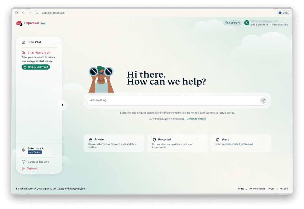 Chat history is never used to train models, and decryption only happens in a secure enclave, ExpressVPN claims