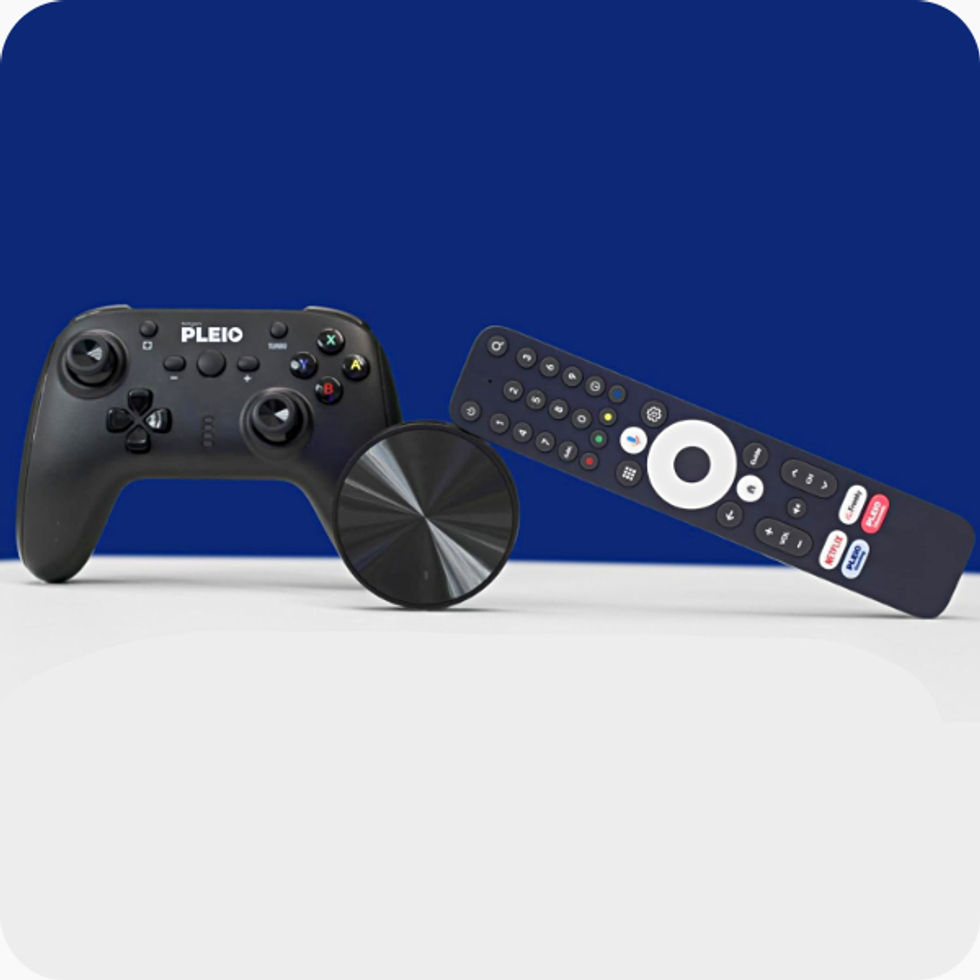 In the box, you'll find the £99 PLEIO streaming set-top box, a remote control with voice control capabilities, and a controller to use with Netgem's cloud-based gaming service