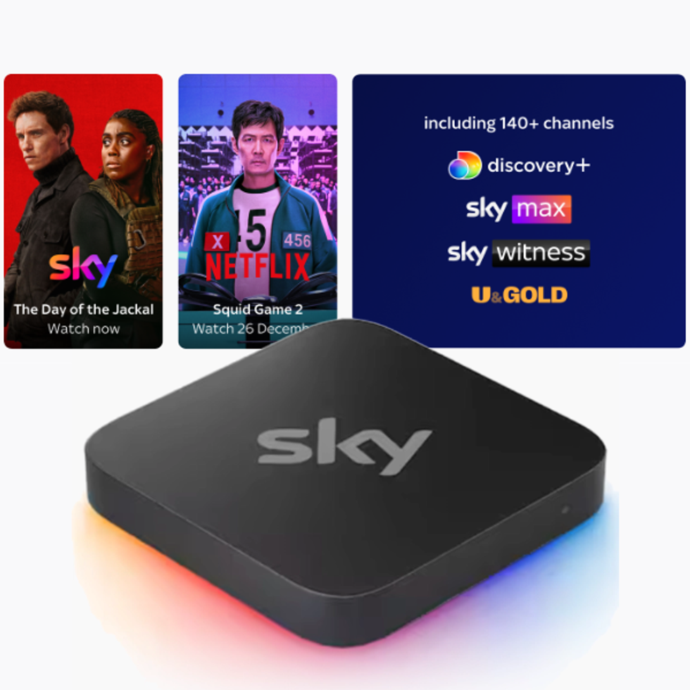 Sky Stream brings the same experience as Sky Glass to any flatscreen via a HDMI connection. Its EntertainmentOS supports the most popular streamers, including Prime Video, BBC iPlayer, ITVX, Channel 4, Apple TV+, Disney+, and Netflix — with the software intelligently recommending new series and films based on your viewing habits | SKY TV PRESS OFFICE Ad-Skipping functionality costs an extra £5 per month with any Sky TV bundle. It can be added at checkout, or when you've received your Stream box or Glass TV.