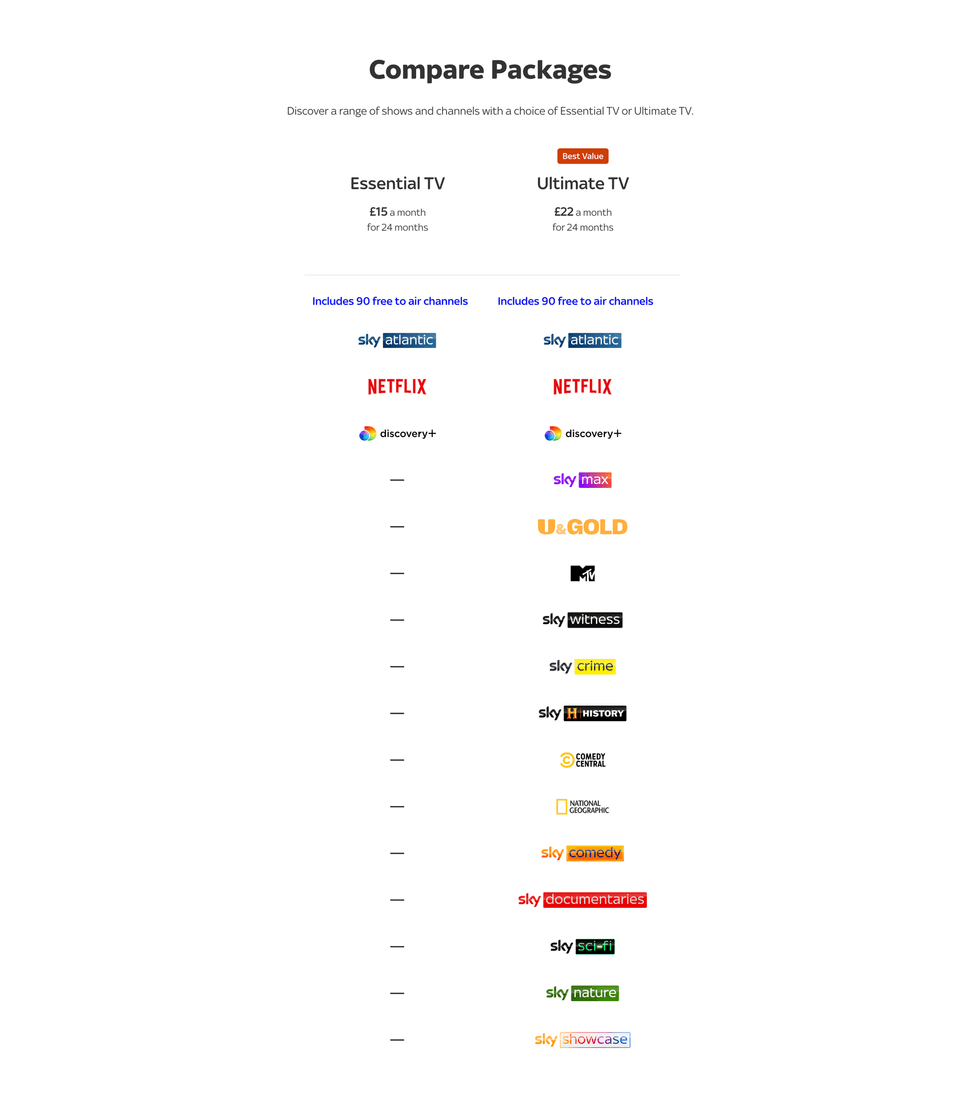 If you want access to the complete lineup of Sky TV channels, you'll need to subscribe to Ultimate TV
