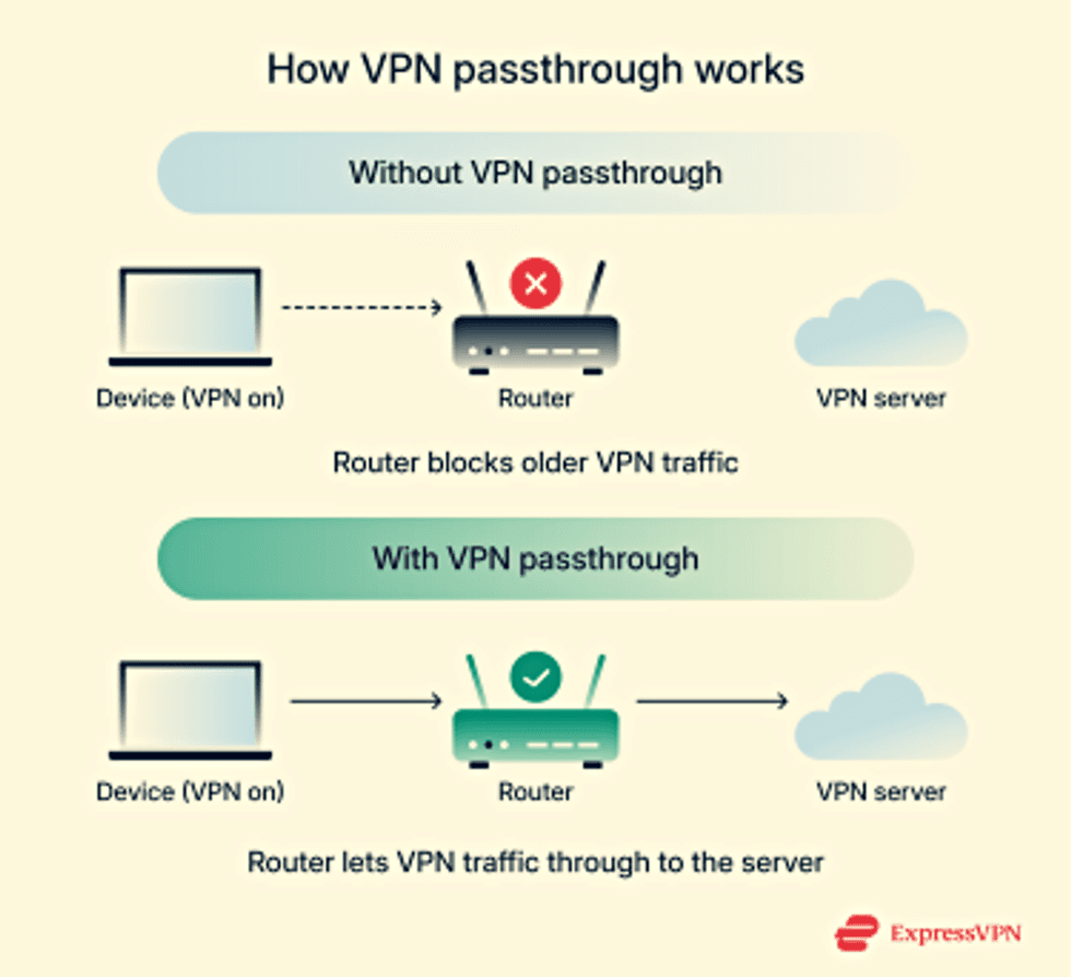 ExpressVPN's proprietary Lightway, is designed to work seamlessly with current routers, making separate passthrough settings unnecessary for most users.