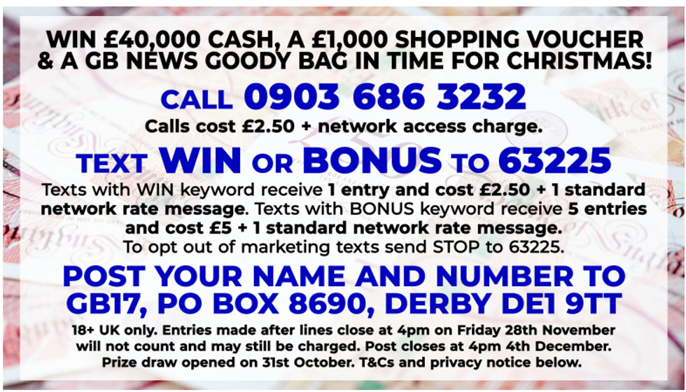 All information and data relating to participants (Personal Data) will be held by the Promoter and may be used by the Promoter and any third parties assisting them in connection with the Prize Draw to contact participants in connection with the Prize Draw, including administering and fulfilling the Prize Draw. Further details of how participants Personal Data may be used can be found in the GB News Privacy Policy and by entering the Prize Draw you agree to the use of your Personal Data under the terms of this policy.