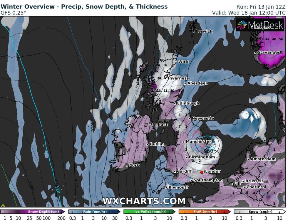 The Met Office said: “There is a 70 per cent probability of severe cold weather/icy conditions/heavy snow between 6pm on Sunday 15 Jan and 9am on Thursday 19 Jan in parts of England.