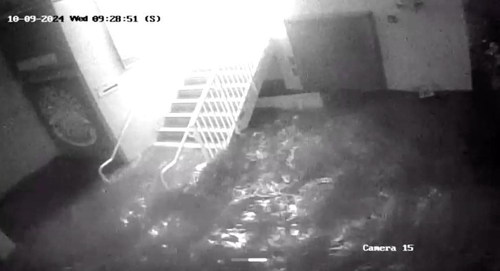 CCTV footage showed flood water reaching the top of a restaurant staircase on Wednesday
