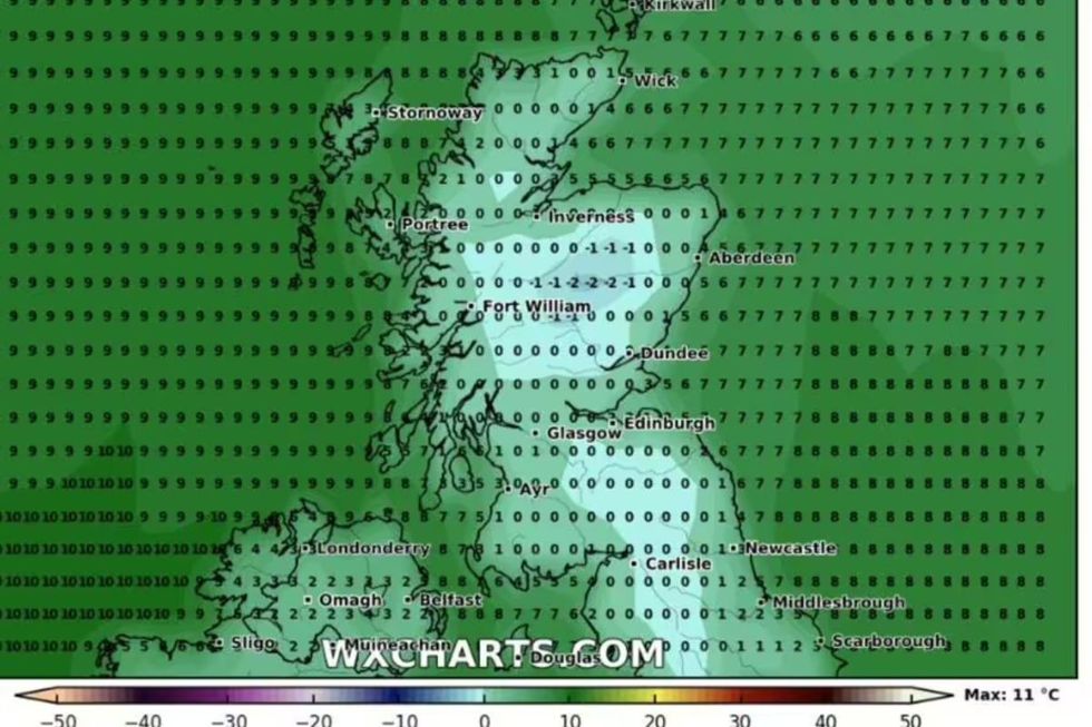 A recent forecast from WXCharts suggested Scotland could see mercury drop to just -2C