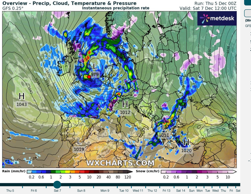 “There has been uncertainty with regards to the exact location of the centre of the low, and now, it looks like it is going to be on the northern flank of the jet, so the colder side of the jet, and this could cause some rapid deepening as it moves towards the UK.