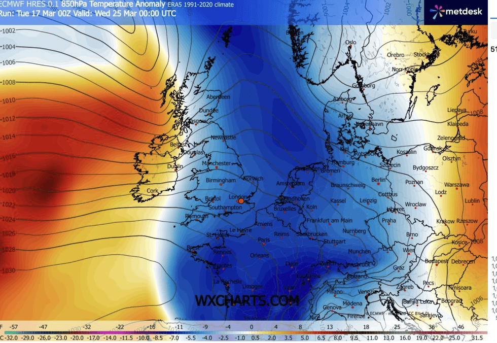 “High pressure is going to move northwards by the weekend, and that is going to bring in an easterly.