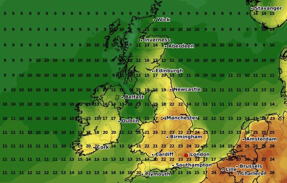 High pressure sitting over the UK will act like a heat dome, warming ground-level air as it falls from higher in the atmosphere.
