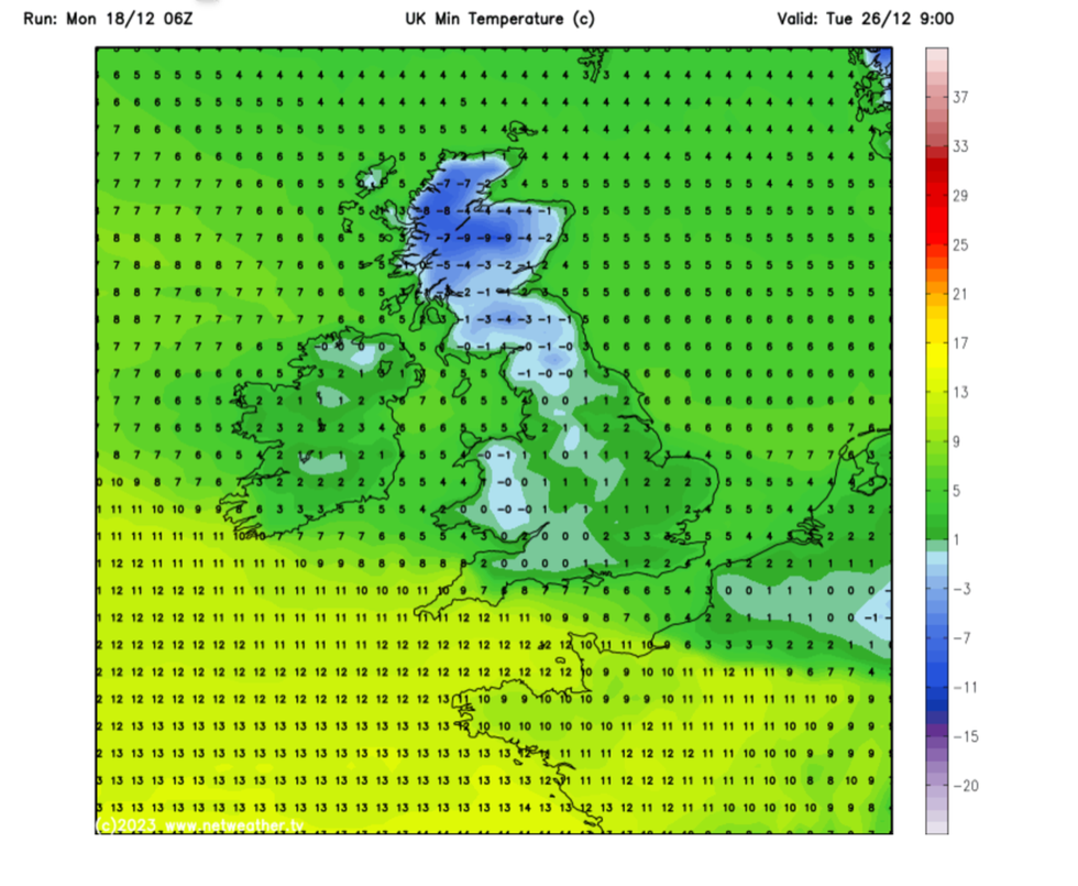 Temperatures will fall in the coming days with lows of -9C expected in parts of the country over Christmas.