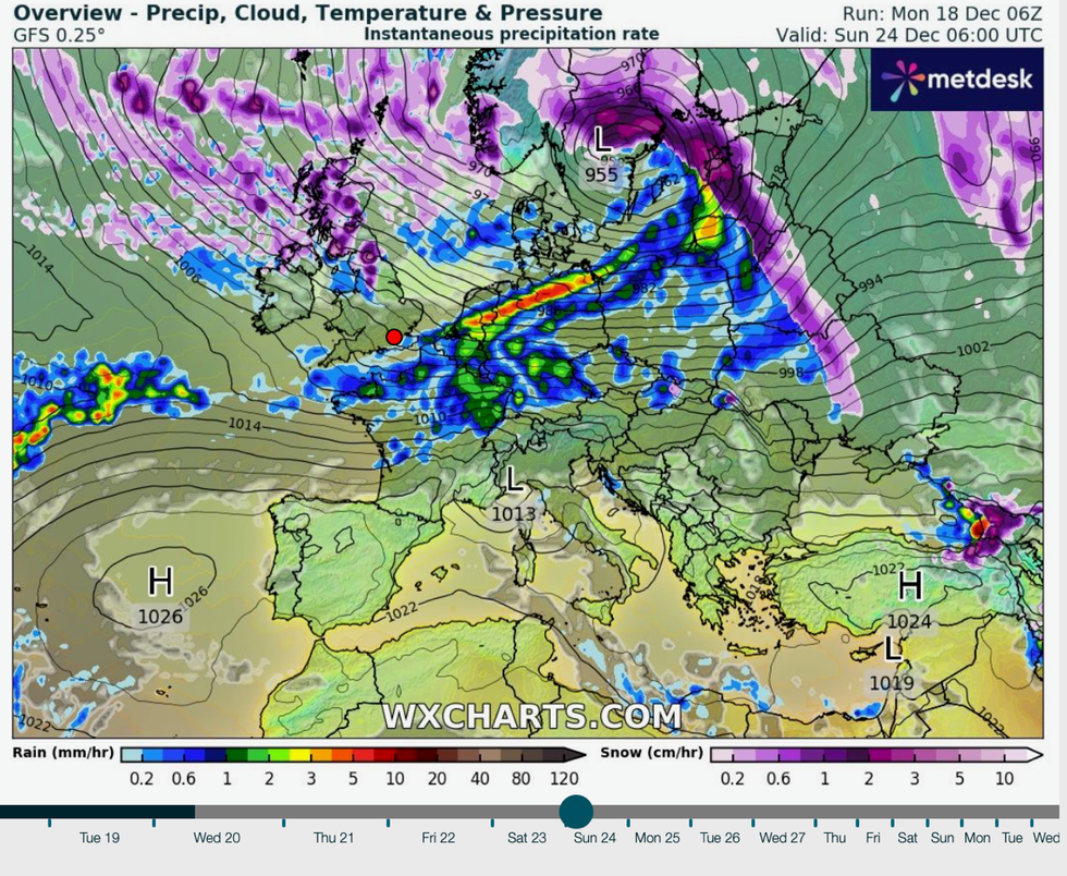 As Festive snow rests on a knife edge, a storm brewing over Sweden could sweep a band of snow across parts of Britain in time for the big day