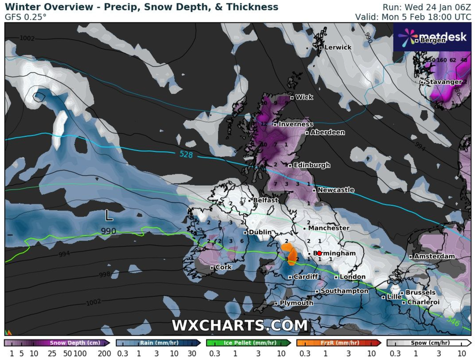 The latest weather maps predict that daytime temperatures will drop to as low as -6C on Monday, February 5.