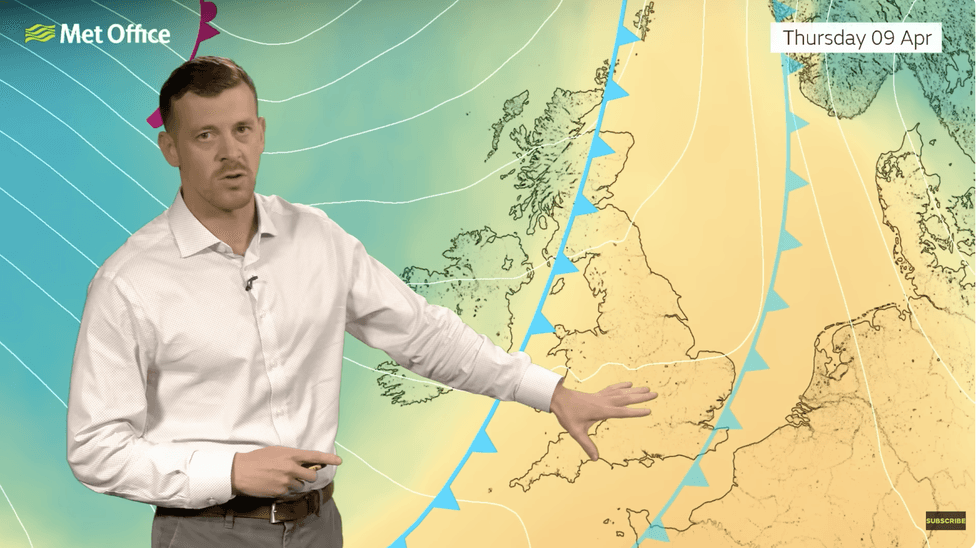 “It’s a fairly brief warm spell, and later on Wednesday we are starting to introduce a couple of cold fronts bringing in a different air mass and colder conditions, and it will bring in some bands of rain and heavy showers.