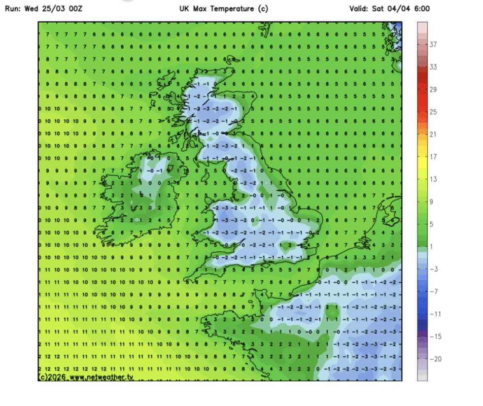 Long-range charts, however, paint a chilly picture with temperatures for the Easter weekend widely at freezing or below.