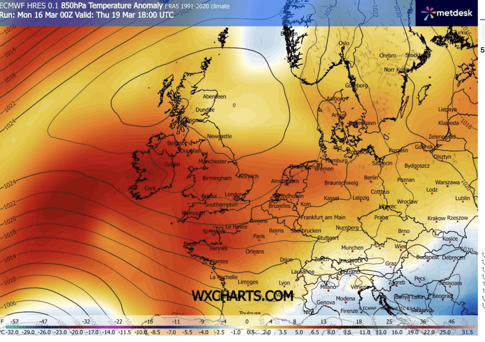 Temperatures above average for mid-March as warm plume sweeps through UK