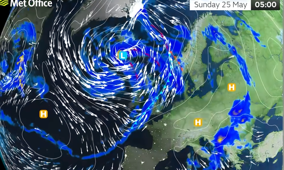 Meteorologist Alex Burkill said: “Low pressure eventually does start to head to the UK, and towards the end of the week, we are going to see that low pressure pretty close to the UK.