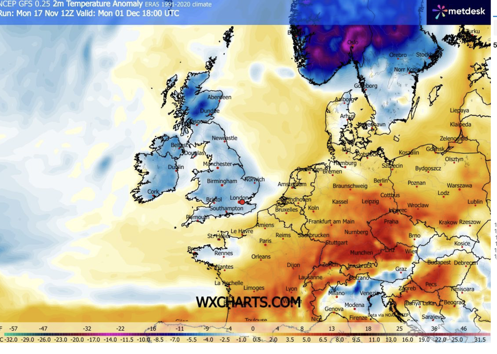 “Although many places will see plenty of sunshine, daytime temperatures will be well-below average, with a widespread frost setting in during the evening, especially in sheltered areas."