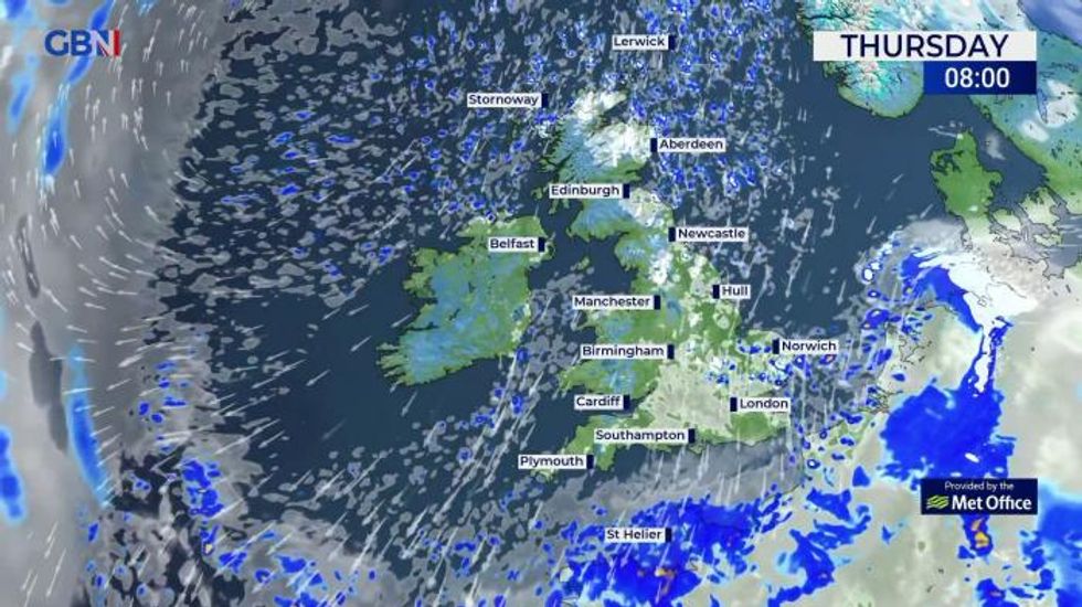 Sunny spells and further wintry showers, most frequent along parts of the north and east coasts. A more organised area of rain affecting parts of western Scotland and Northern Ireland.