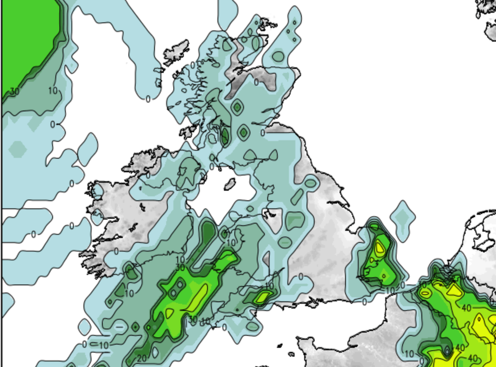 The latest weather maps show more than 30mm of rainfall on Friday across parts of Scotland.