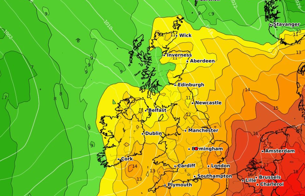 Temperatures will rocket ahead of the weekend as low pressure to the west tussles high pressure to the east, funnelling a channel of fire from Europe.