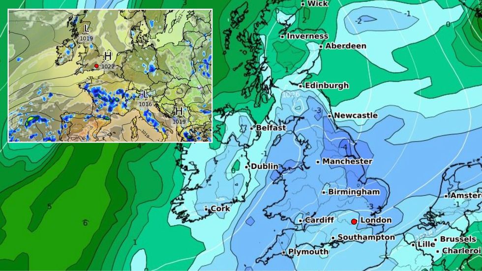 Britain will become a pressure battleground as tussling weather systems drag a chill wind off the North Sea