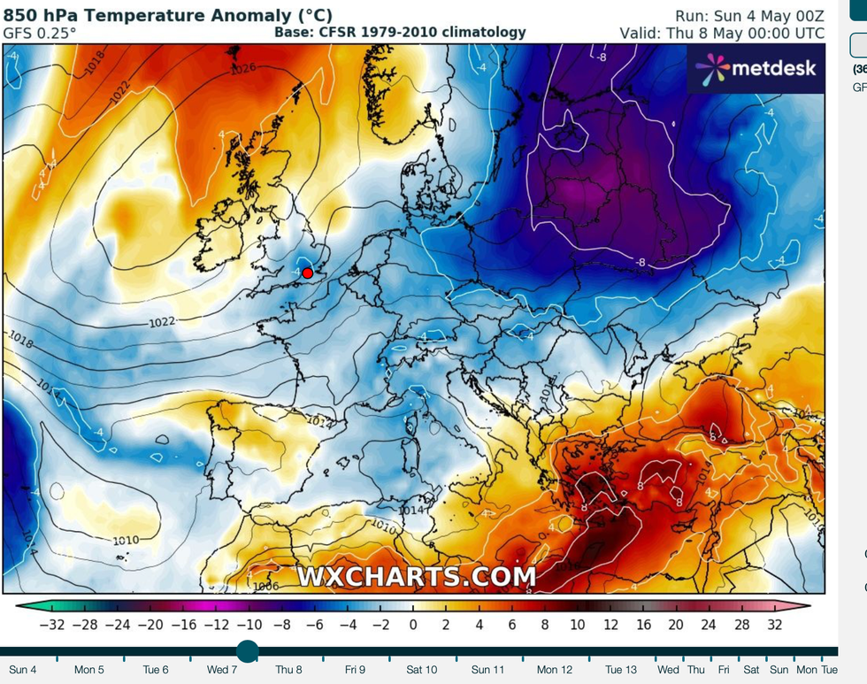 “Some of the models show that low pressure is closer bringing a northerly flow and that would bring quite a cold day on Thursday, so it is going to be a question of where the high and the low sits.”