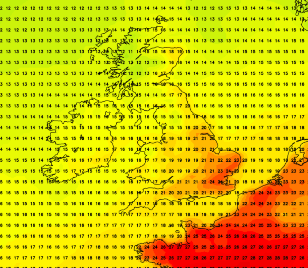 "It'll mainly cover South-East England, with 23 or 24C possible at the upper limits," he told The Mirror.