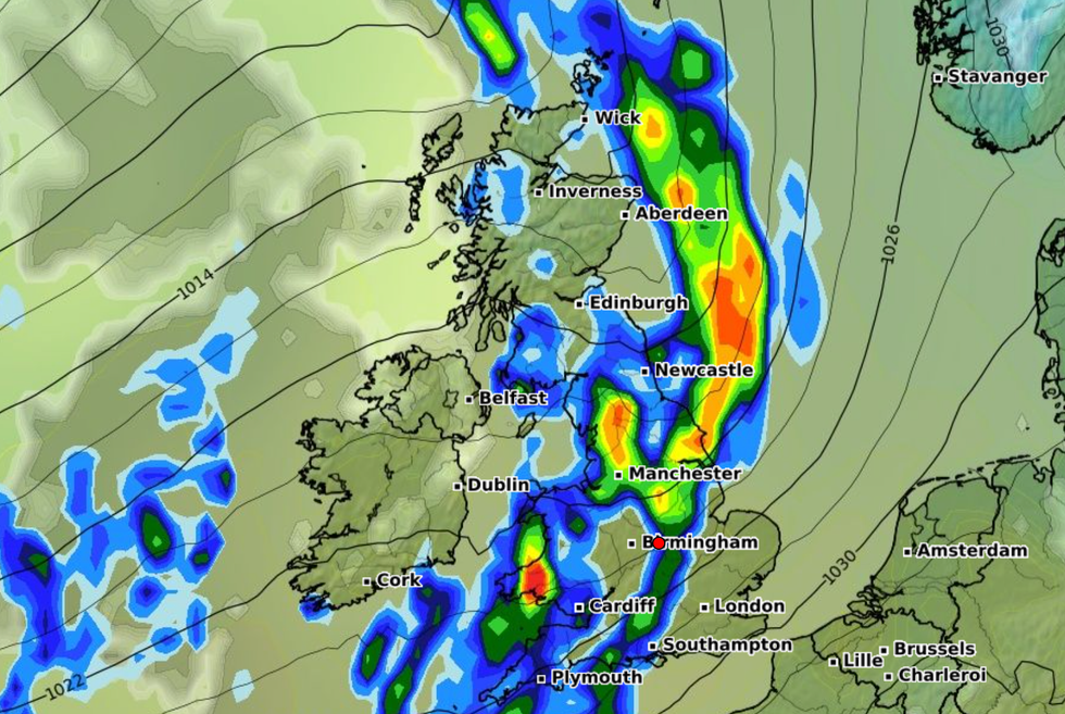 Heavy rain is expected to move from the west to east of the UK