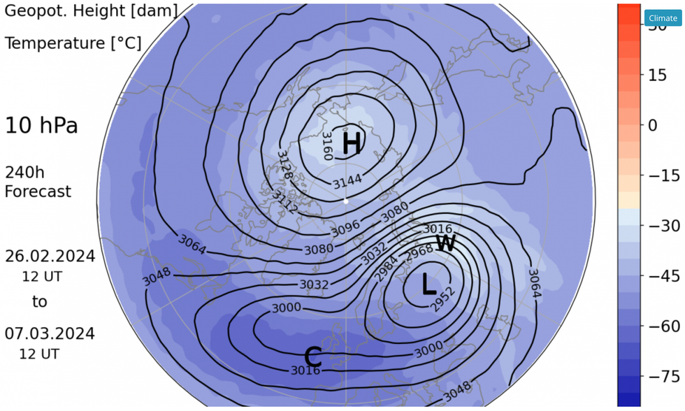A major Sudden Stratospheric Warming (SSW) is likely to occur tomorrow - bringing milder but potentially cold conditions.