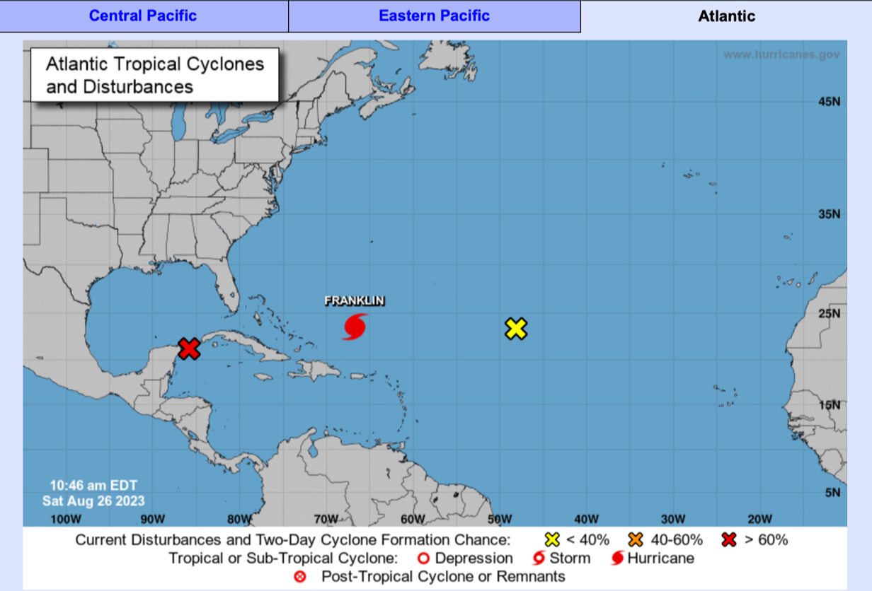 The US National Hurricane Centre last week said three tropical storms, Emily and Gert and Harold, and a hurricane, Franklin, had formed in under two days – setting a record.