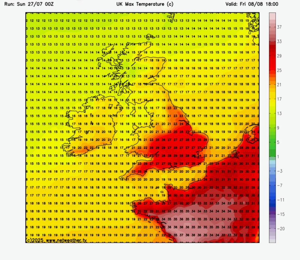 “From next week there are signs that temperatures are going to start heading upwards, and we are probably going to get back to the 30Cs by mid- to late-August.