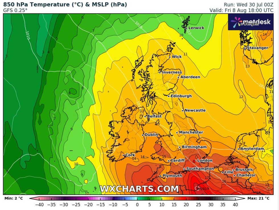 Dale said: “The Azores High is likely to build back through the next week or so, and this could bring a return to much warmer conditions, particularly across southern parts of the country.