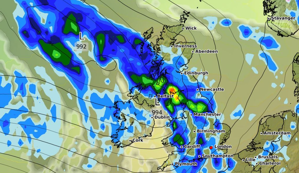 London, however, is likely to be one of the few places that will stay dry on Thursday evening.