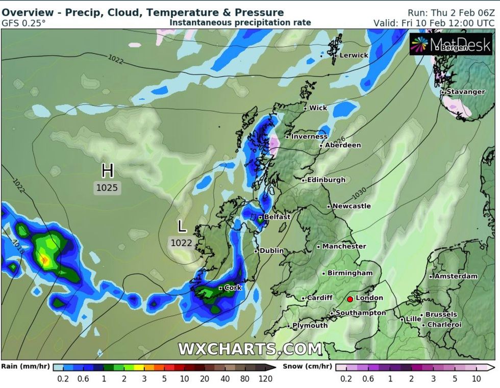 A large band of rain is expected to head towards Britain | Image: WX Charts