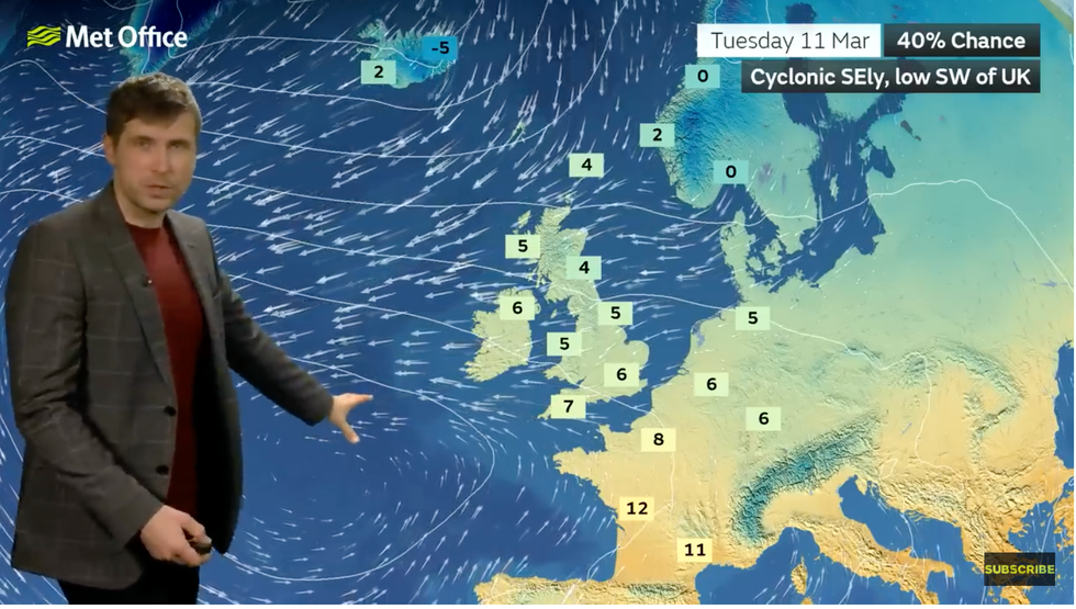 Either scenario would see the mild weekend sunshine give way to an early spring chill and a touch of sleet or snow.