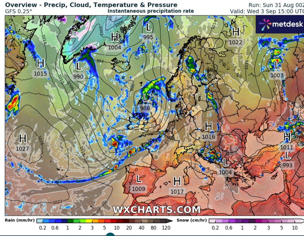 He said: “It is more likely that we see lower-than-average pressure for the week, and that goes in line with that unsettled theme as we are expecting as we go into the start of meteorological autumn.