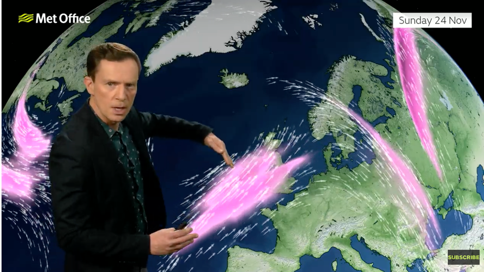 The "cyclonic" low will be powered by a frenzied jet stream hurtling out of America and splitting into two storm-charged "arms".