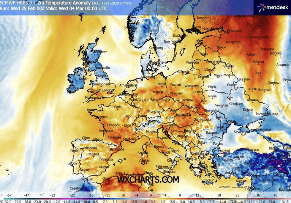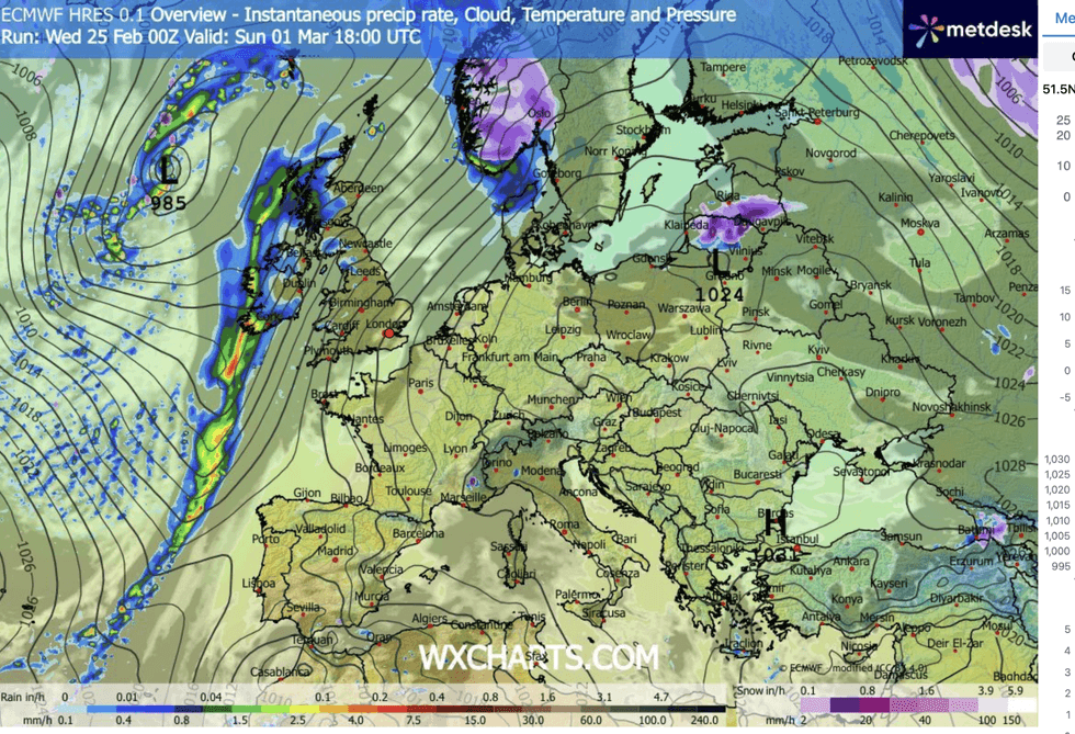 Britain’s first taste of spring will quickly fizzle as the Atlantic doors open to a ‘queue’ of stormy weather systems.