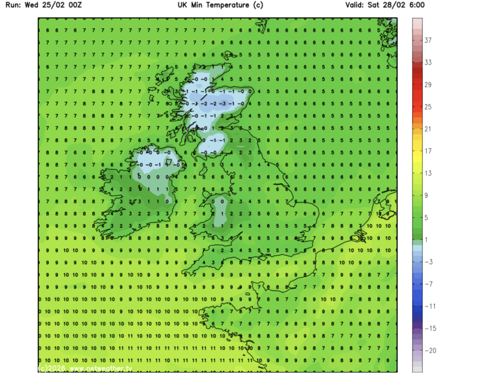 “The Polar front edges back in, with the cold returning first to Scotland and then to the rest of the country.