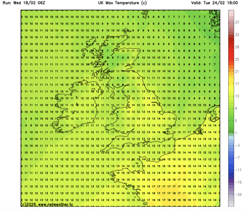 “We are seeing temperatures get widely over double figures and into the teens, and if we get some brightness we could get into the mid-teens in some locations.