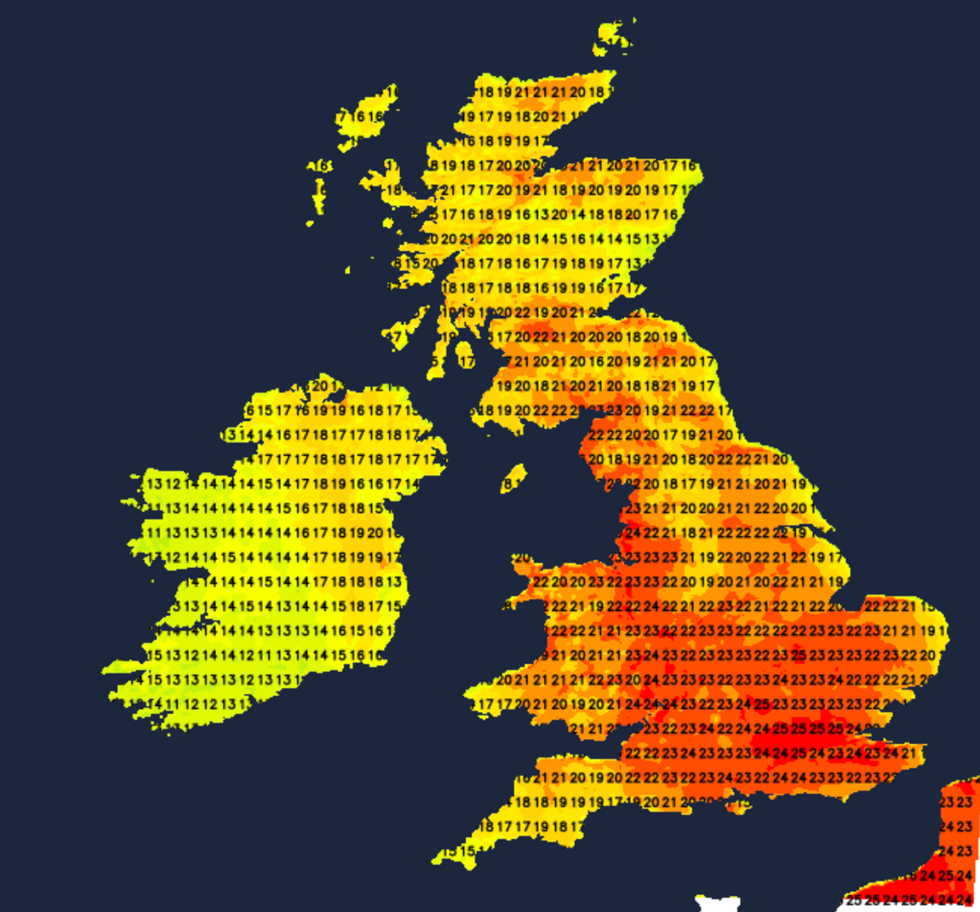 Southern England will see temperatures of 25C on Friday, with temperatures reaching 26C on Saturday and possibly 27C on Sunday.