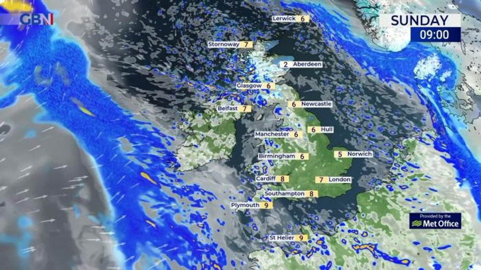 Early showers in the north and west, heavy at times, will become mostly confined to parts of northern England by mid to late afternoon. Cloud and rain then developing in the southwest this afternoon and otherwise mostly fine and dry.