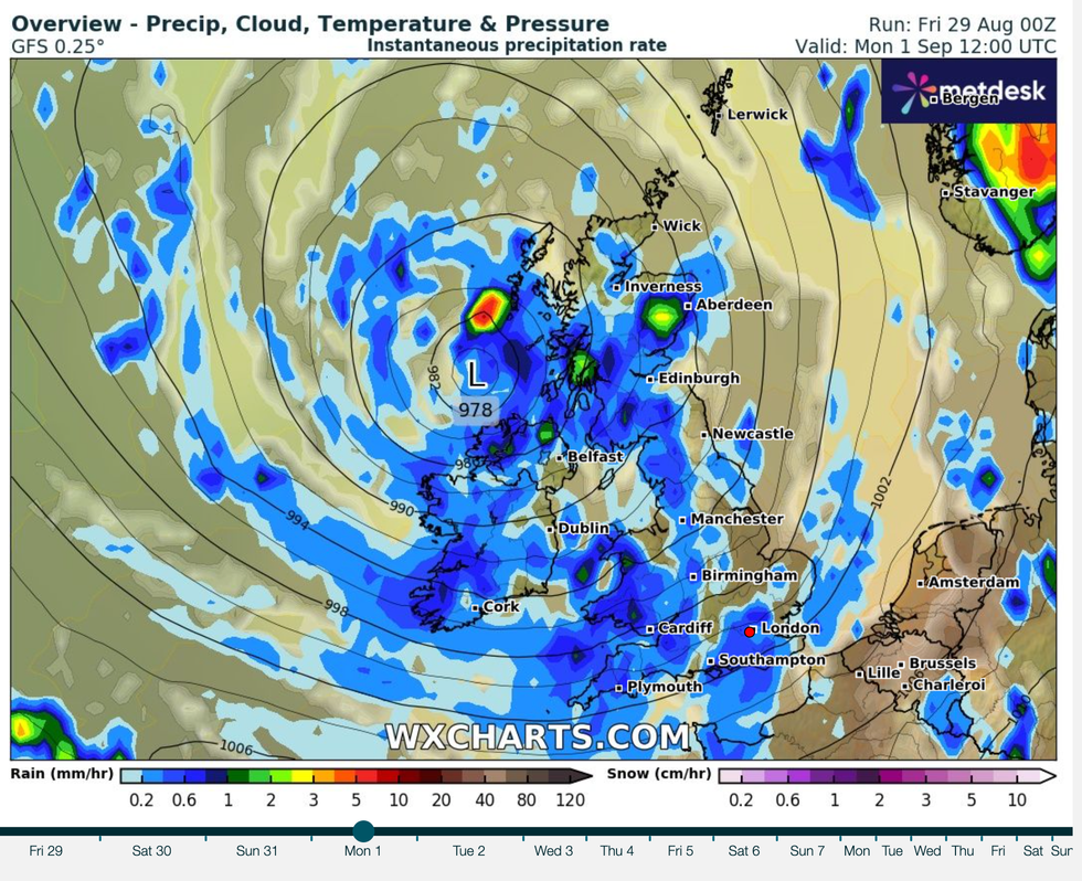 “It is a relatively deep area of low pressure, and it is going to bring some unseasonable weather even though it is still meteorological summer, and so we are in for a bit more of an unsettled spell on Saturday into Sunday.”