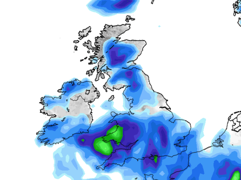 Outbreaks of rain already affecting southwest England will move northwards across Wales throughout Monday.