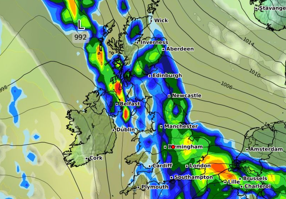 Met Office forecasters say low pressure is forecast to remain in charge of the UK’s weather into the start of next week, with potential for further spells of wet and windy weather.