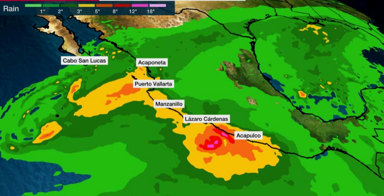 The storm is forecast to strengthen through the coming days as it hurtles towards the west coast of Mexico.